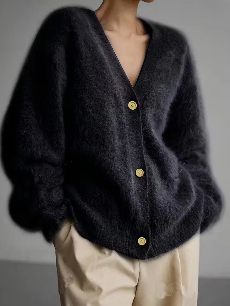 Un cárdigan holgado suave, cálido y lleno de estilo, diseñado para envolver tu día a día en comodidad y elegancia. Confeccionado en un material ligero y muy agradable al tacto que aporta una sensación cálida y acogedora. Su diseño amplio crea un look relajado y sofisticado, perfecto para llevar tanto en casa como en tus conjuntos diarios. Un básico atemporal que combina con todo y se adapta a cualquier ocasión.