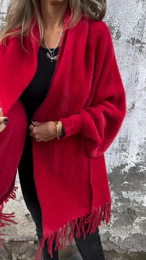 El manto Aurora es la prenda perfecta para quienes buscan comodidad, calidez y estilo atemporal en un solo diseño. Suave, envolvente y con un sutil toque bohemio gracias a los flecos en el bajo, se convierte en el aliado ideal para el entretiempo y los días fríos. Con su caída ligera y favorecedora, aporta ese aire relajado que realza cualquier conjunto, desde los más sencillos hasta los más sofisticados.