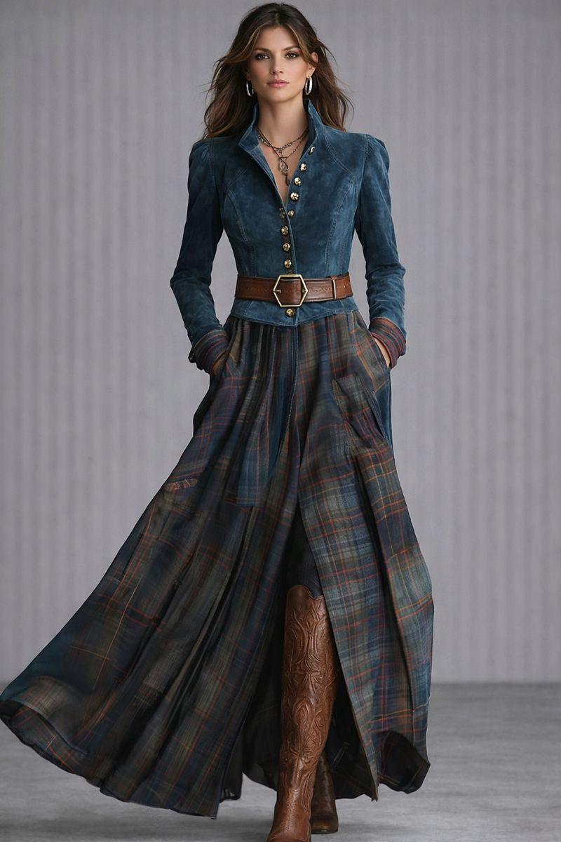 Edurne - Vestido bohemio efecto ante con falda de cuadros