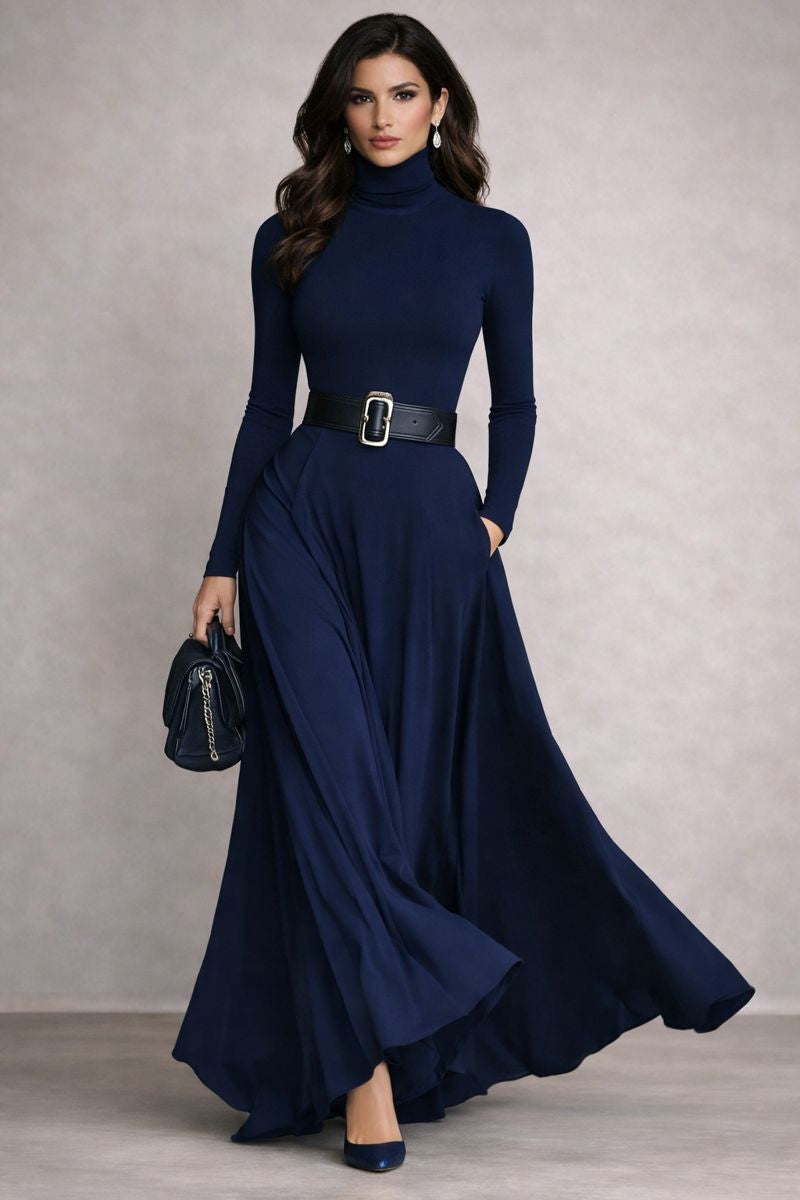 Elisa - Vestido largo de cuello alto y corte fluido