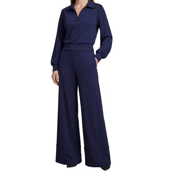 Isabel – Traje de mujer con blusa de solapa y pantalón ancho