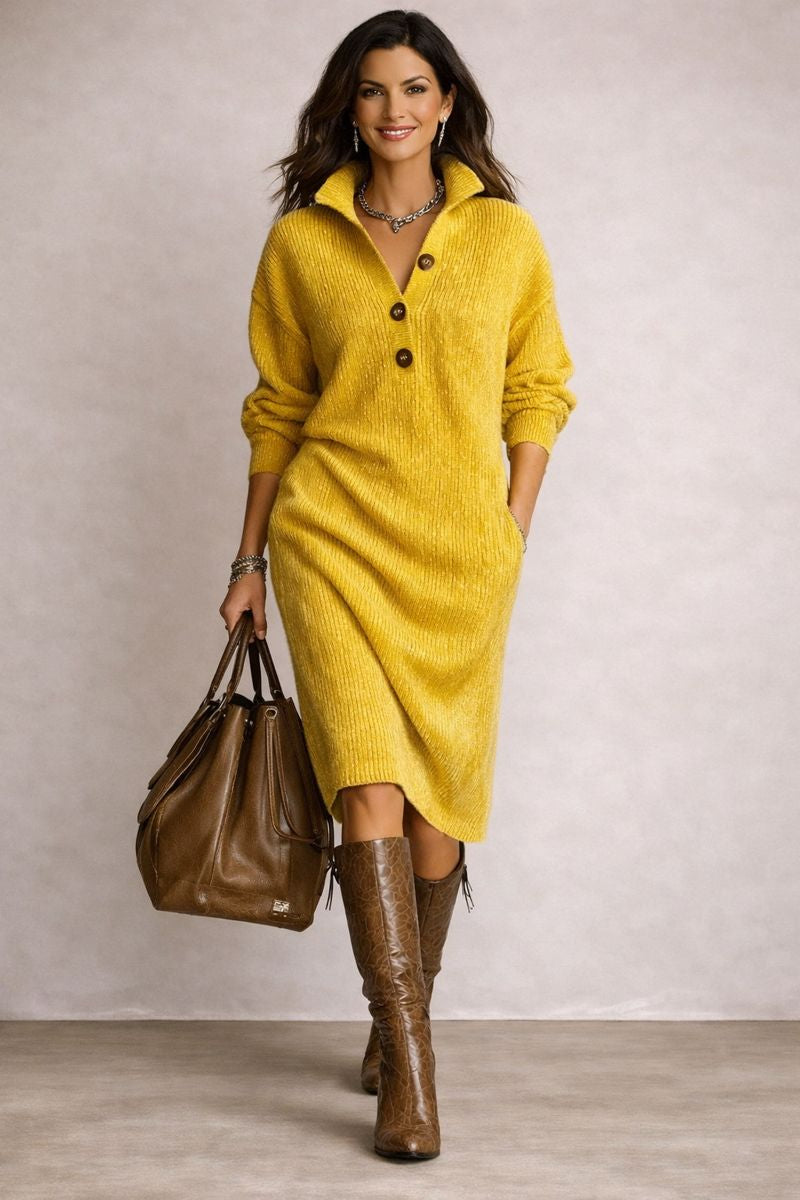 Lorena - Vestido de punto con cuello y botones