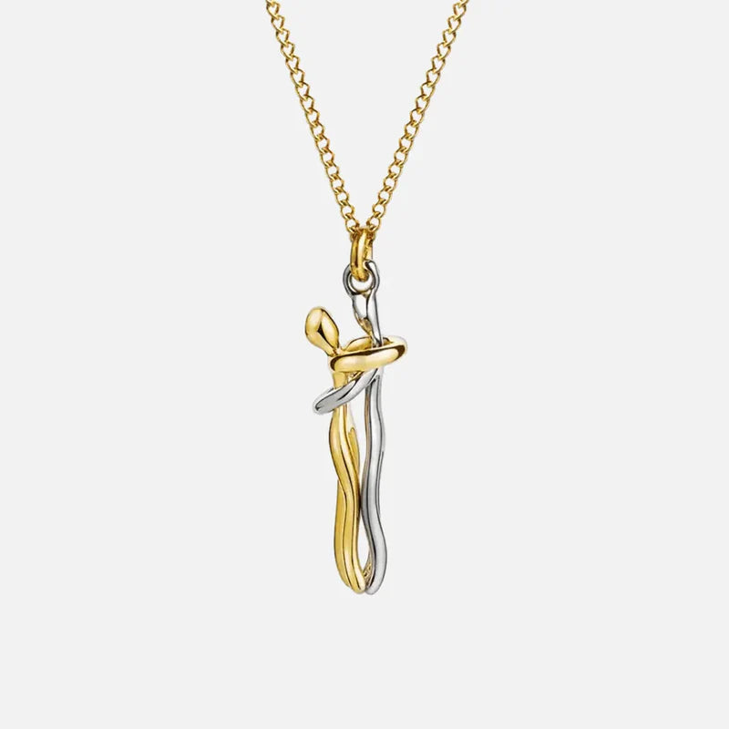 El collar Luna captura la esencia de una conexión auténtica: dos almas unidas en un abrazo eterno. Su diseño fluido en tonos dorado y plateado representa la armonía, la confianza y el amor incondicional. Una joya con significado, pensada para acompañarte cada día como recuerdo de un vínculo especial.