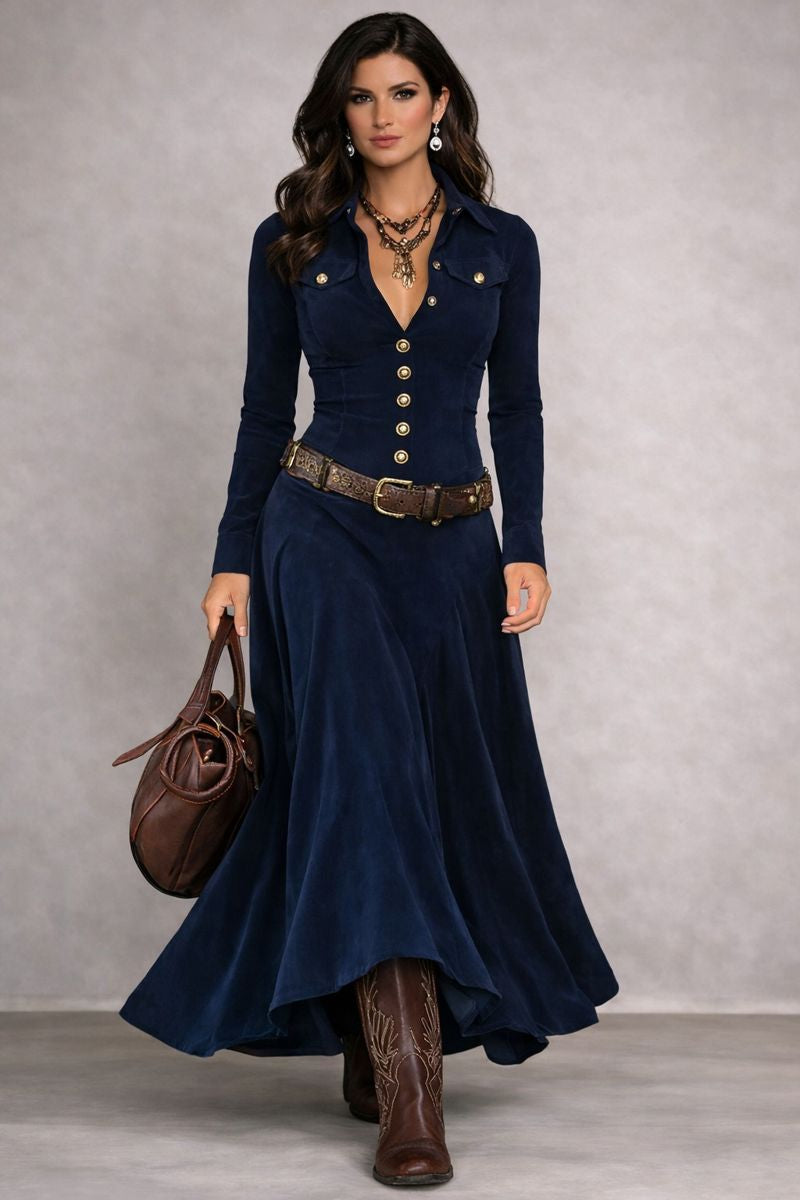 El vestido Milana destaca por su diseño refinado y su corte entallado que realza la figura con elegancia. Confeccionado en ante sintético suave, ofrece un tacto lujoso y una caída fluida que aporta movimiento y sofisticación. Su abertura frontal, el cuello camisero y las mangas largas crean un look femenino, moderno y perfecto para ocasiones especiales.